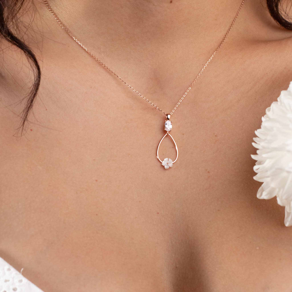 • Material: Rosé vergoldetes Sterlingsilber, echte Perlmuttblume, Zirkonia Kristalle