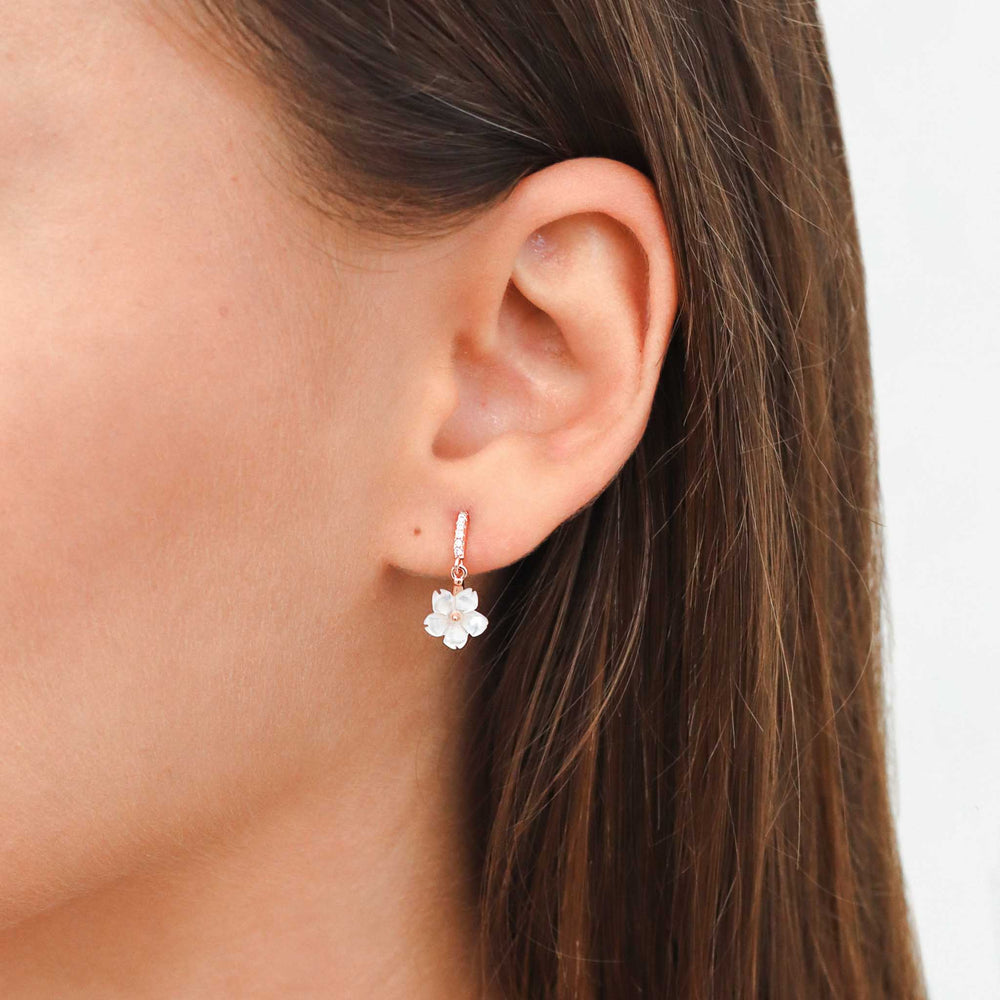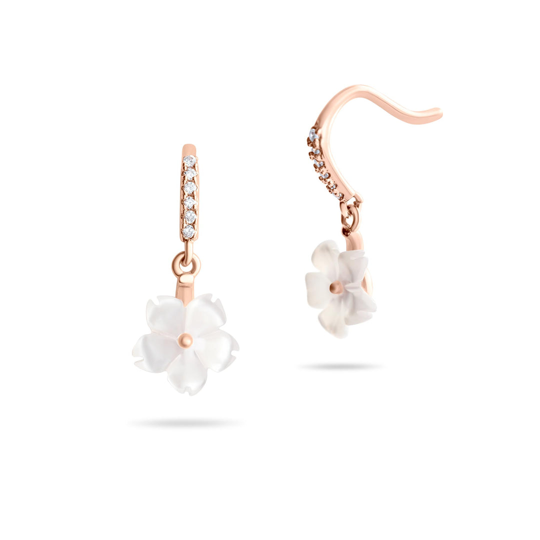 • Material: Roségold vergoldetes Kupfer (Echtgold-Plattierung), echte Perlmuttblume, Zirkonia Kristalle (Diamantimitation)