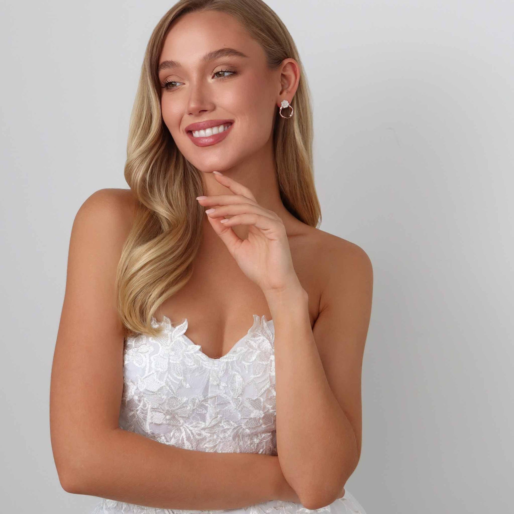 - Material: Roségold vergoldetes Kupfer (Echtgold-Plattierung), Zirkonia Kristalle (Diamantimitation), Perlmutt-Blume