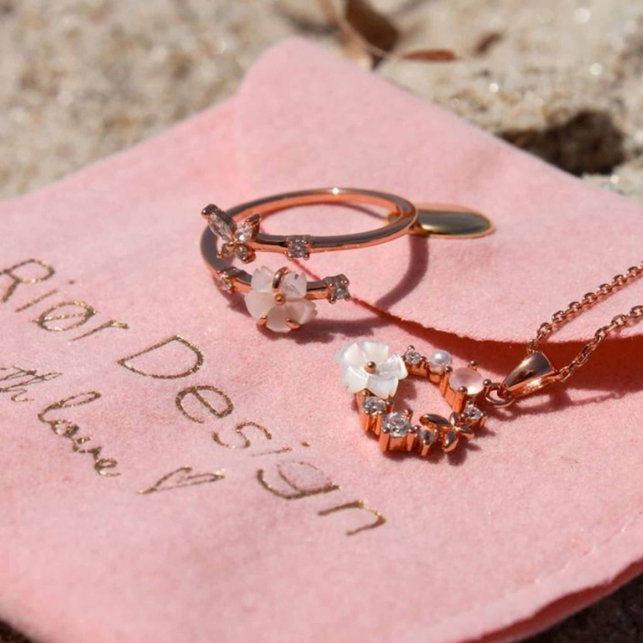 - Material: Rosévergoldetes Kupfer (Echtgold-Plattierung), Zirkonia Kristalle (Diamantimitation), Perlmuttblume
